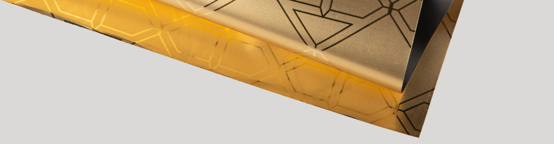 Our customized paper is elegant, refined and unique. Metallic light reflections from the graphics enhance the product’s enveloped value.